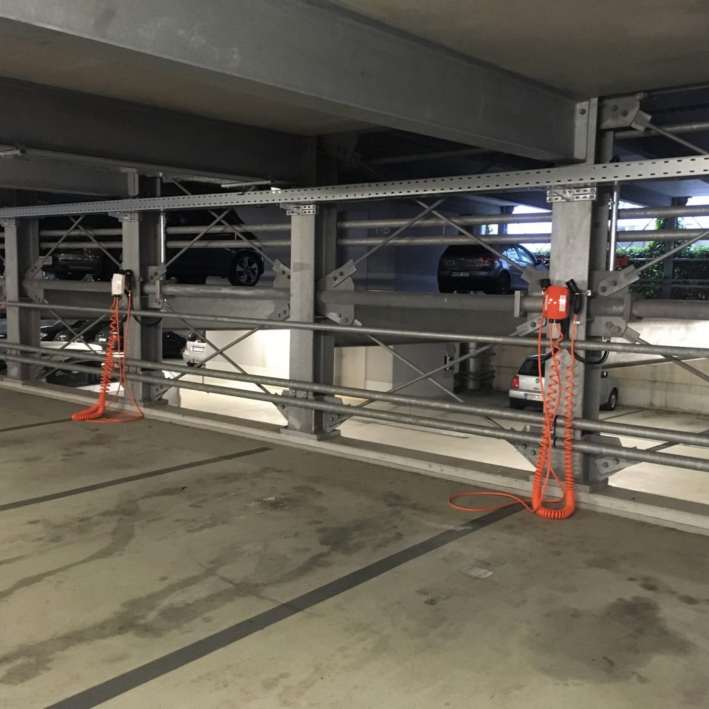 Am 7. Februar 2018 wurde die erste ChargeHere Pilotanlage im Parkhaus der EnBW City feierlich in Betrieb genommen. Eine Woche nach Aufbau und Probeversuchen klappten die ersten Ladevorgänge mit der neuen Ladelösung reibungslos. Den Kolleginnen und Kollegen können auf diese Weise weitere Ladepunkte im Parkhaus angeboten werden. Da die Anzahl der E-Fahrzeug-Nutzer auch bei der EnBW wächst, muss die Lösungen mit dem Ladebedarf einfach mitwachsen. Die Hinweise der Nutzer helfen nun bei der Entwicklung.
